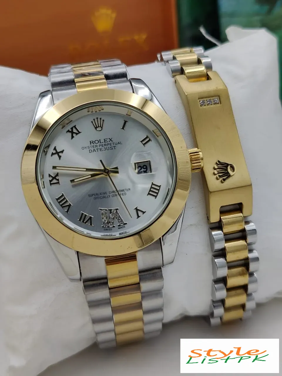 Order online @ stylelist.pk and get your Rolex Oyster Date-just Female Watch at home! Cities we can delivered to Karachi Lahore Faisalabad Rawalpindi Gujranwala Peshawar Multan Hyderabad Islamabad Quetta Bahawalpur Sargodha Sialkot Sukkur Larkana Sheikhupura Rahim Yar Khan Jhang Dera Ghazi Khan Gujrat Sahiwal Wah Cantonment Mardan Kasur Okara Mingora Nawabshah Chiniot Kotri Kamoke Hafizabad Sadiqabad Mirpur Khas Burewala Kohat Khanewal Dera Ismail Khan Turbat Muzaffargarh Abbotabad Mandi Bahauddin Shikarpur Jacobabad Jhelum Khanpur Khairpur Khuzdar Pakpattan Hub Daska Gojra Dadu Muridke Bahawalnagar Samundri Tando Allahyar Tando Adam Jaranwala Chishtian Muzaffarabad Attock Vehari Kot Abdul Malik Ferozwala Chakwal Gujranwala Cantonment Kamalia Umerkot Ahmedpur East Kot Addu Wazirabad Mansehra Layyah Mirpur Swabi Chaman Taxila Nowshera Khushab Shahdadkot Mianwali Kabal Lodhran Hasilpur Charsadda Bhakkar Badin Arif Wala Ghotki Sambrial Jatoi Haroonabad Daharki Narowal Tando Muhammad Khan Kamber Ali Khan Mirpur Mathelo Kandhkot Bhalwal and all other cities of Pakistan